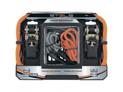 Изготовлены из высококачественных материалов.В комплект входят 2 резинки круглого сечения с крюками, а также 2 плоских ремня с застегивающимися механизмами.Применяются для закрепления грузов, например, на автомобильном багажнике.