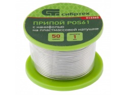 Припой с канифолью, D 1 мм, 50 г, POS61, на пластмассовой катушке Сибртех СИБРТЕХ 913365