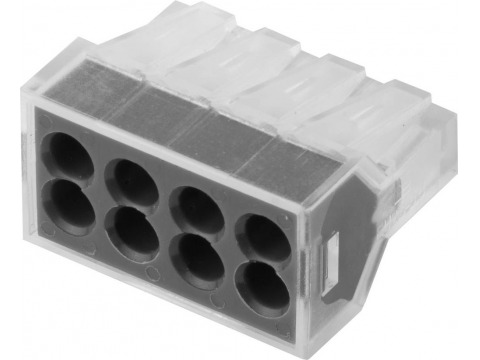 Клемма соединительная СВЕТОЗАР 49170-2 Применяется для неразъемного соединения жил проводов сечением от 0,75 до 2,5 мм2 Особенности: Неразъемная, 8-и проводная С сердечником из высококачественной меди и прижимной пластиной из пружинной стали с антикоррозийным покрытием