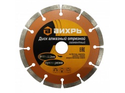Диск алмазный отрезной сегментный 150х22,2 мм,сухая резка 73/10/3/3 Вихрь