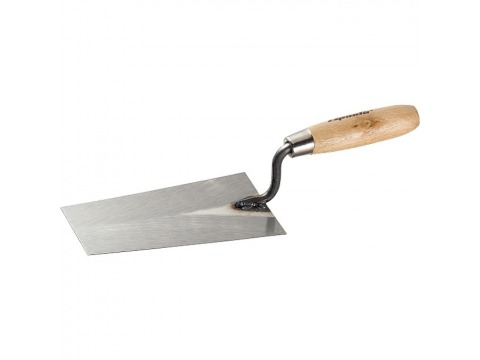 Полотно кельмы изготовлено из высокоуглеродистой стали. Деревянная ручка отшлифована и покрыта лаком. Кельма каменщика предназначена для укладывания, набрасывания и выравнивания песчано-цементных растворов.