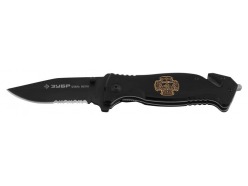 Нож ЗУБР "ЭКСПЕРТ" СПАСАТЕЛЬ складной, серрейтор. заточка, наконечник д/стекол,резак,200мм/лезвие 90 47707_z01