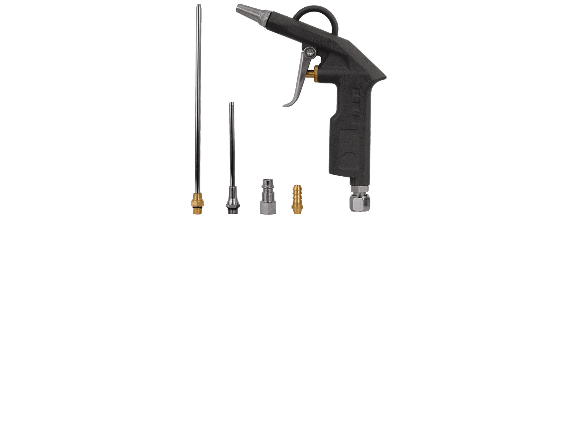 КОМПЛЕКТАЦИЯ: пистолет обдувочный, насадка 215 мм, насадка 100 мм, адаптер с внутренней резьбой, адаптер «елочка».